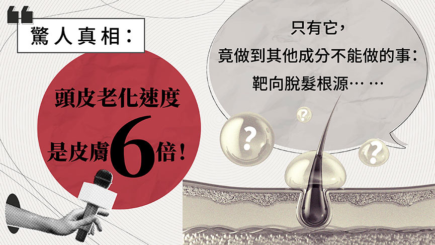 廣告文章 頭皮老化速度=面部6倍 點解當開始甩髮,就會一發不可收拾?謎底終於解開!原來頭皮的老化速度是面部6倍,而人體的皮膚細胞每日都以億計死亡,可想而知頭髮生命之脆弱。在這個情況下,當自體免疫開始失衡,老廢髮細胞的滋生速度就會非常驚人,加劇脫髮的惡性循環。 咪住!冇人講過老廢髮細胞先係脫髮元兇 重磅雜誌《自然-衰老》就有篇文章,簡直對一眾脫髮人士投下震撼彈。根據東京大學松村寛行教授(MATSUMURA Hiroyuki)的最新研究,毛囊入面的老廢髮細胞,才是脫髮的隱藏核心。由於人體會衰老,加上精神壓力等,老廢髮細胞就會愈積愈多,污染毛囊的免疫微環境,令毛囊萎縮,造成脫髮。 一般育髮方法從未針對脫髮根源 究竟我們平時使用育髮精華、服食Supplement,又用了甚麼育髮手段?現在市面買得到的產品,皆強調毛囊營養不足,所以著重補充營養,例如標榜微細成分,或者採用了日本政府認可的育髮成分。