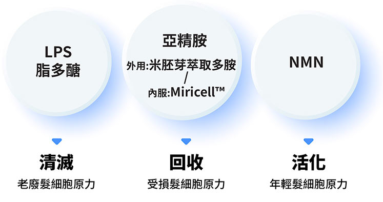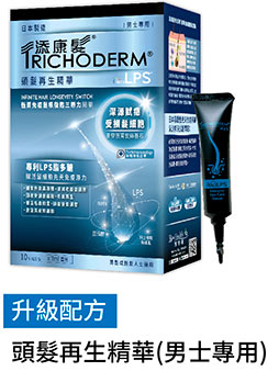 今次添康髮的升級配方,最特別是除了含LPS脂多醣外,更加入兩種珍貴育髮成分,共同組成恆菁免疫髮根復甦三原力,令男士重現爆髮力。